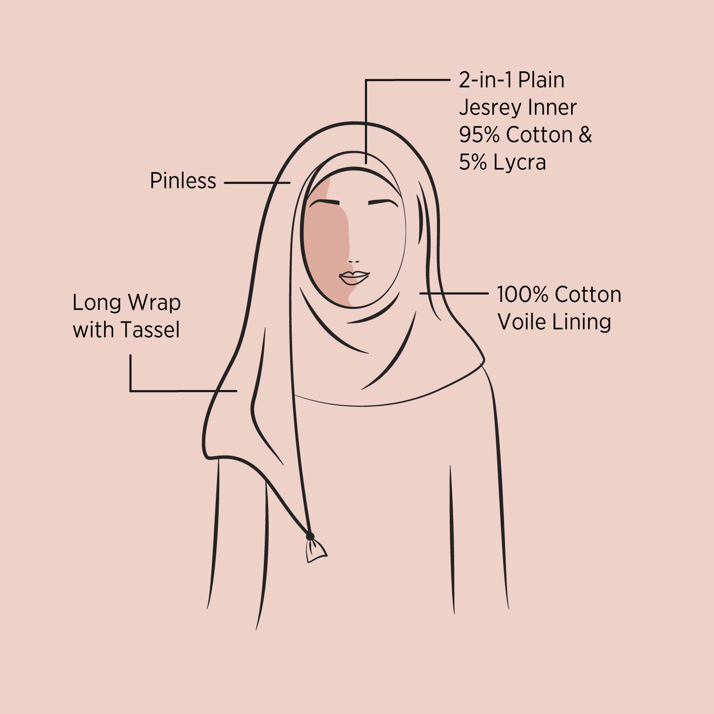This hijab comes in 2 lengths: TAJ and TAJMAXI, and can be styled in at least 5 different ways.