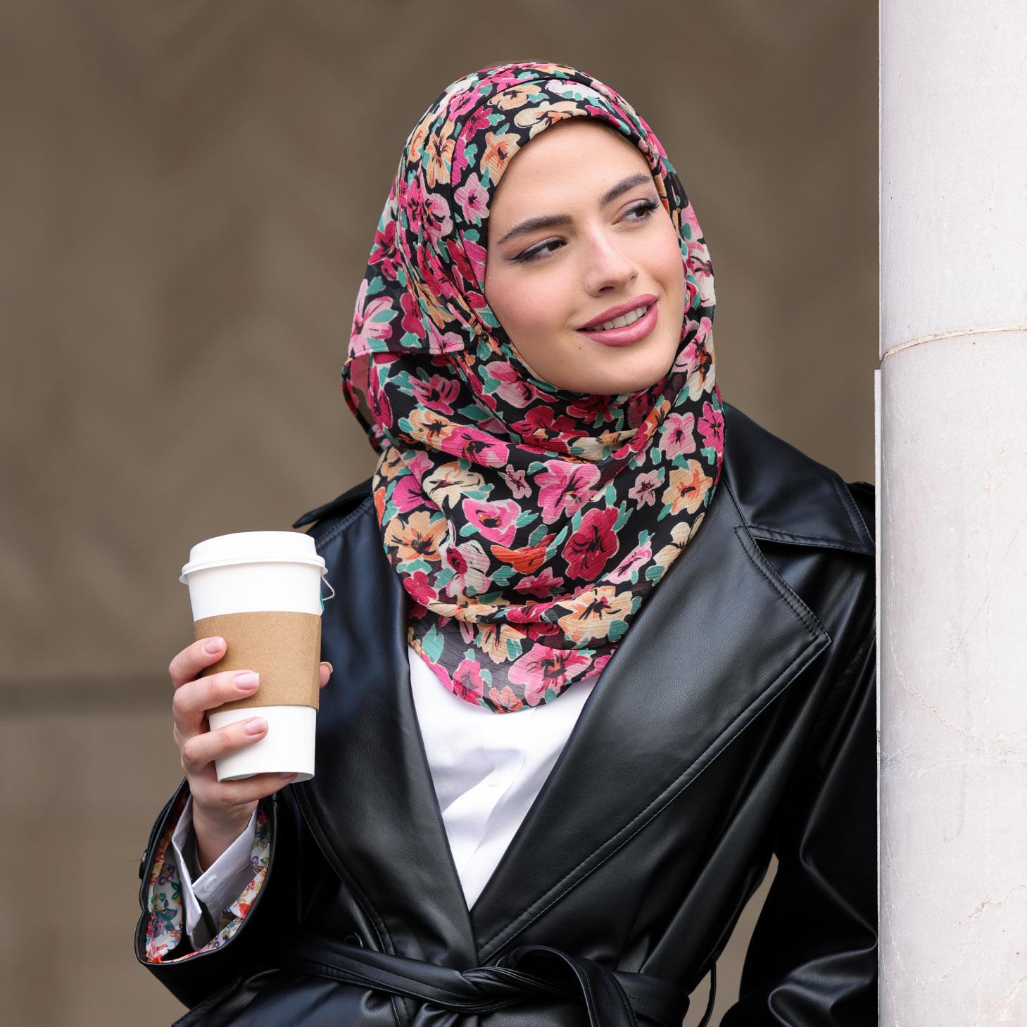 This ready-to-wear designer hijab is made of exclusive lightweight high-quality fabric and lined with 100% cotton voile to ensure breathability and comfort for hijabi women.